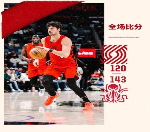 面对此前已经7连败,且只有3胜22负联盟倒数第一战绩的鹈鹕,开拓者却遭遇一场崩盘惨败。开拓者上半场仅68-70落后,却在末节被拉开20+差距,最终120-143惨负鹈鹕,未能招架鹈鹕6人得分15+的团队攻势。