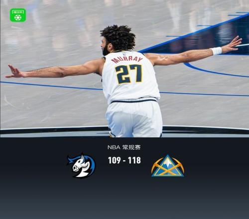 第四节独行侠布兰登-威廉姆斯拿下11分,掘金贾马尔-穆雷拿下11分,最终独行侠109-118不敌掘金